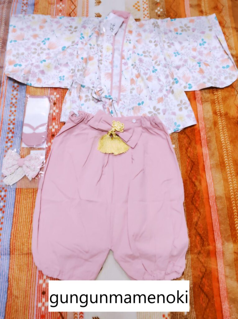 ベビー袴です。※ちなみに豆ママは大きめを買って数年着てほしいのでサイズは90です。