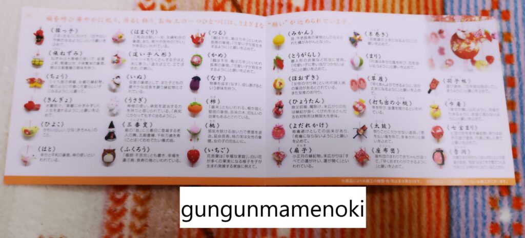 ちなみに、箱の中にはつるし飾りの飾りに対して1つ1つ意味があることも写真付きで紹介されています。豆ママは知らないことばかりだったので、勉強になりました!